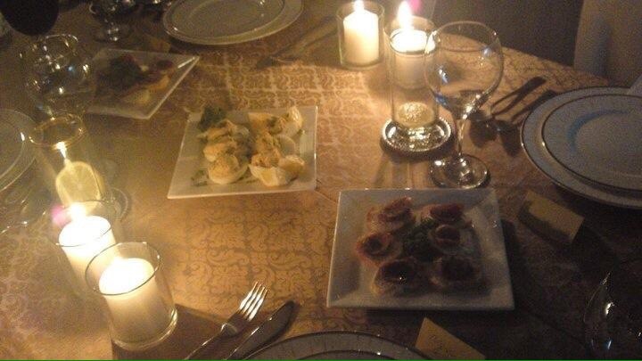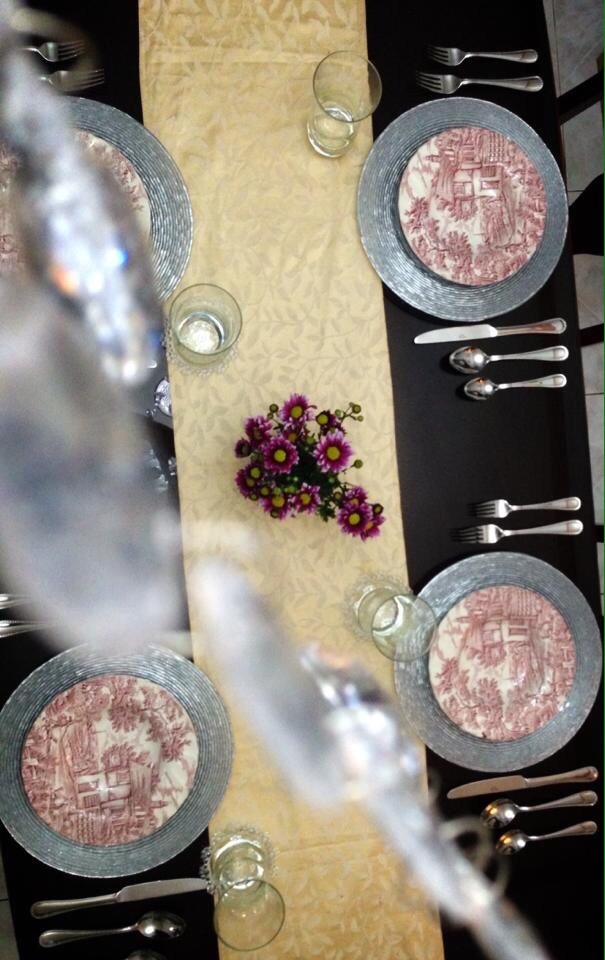 Trust me on this-use unscented tea light candles. The candles I used here were way too big. A newly engaged couple I invited for dinner felt the heat. Literally!