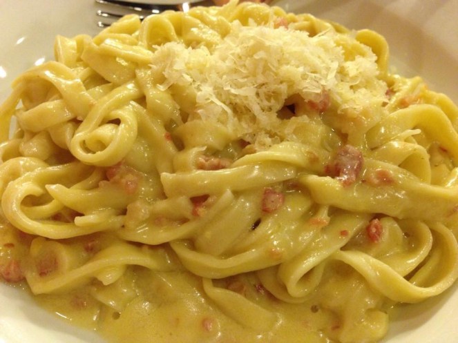 Salted Egg Pasta Fettucine, Bacon, Salted Egg, Cream, Parmesan.