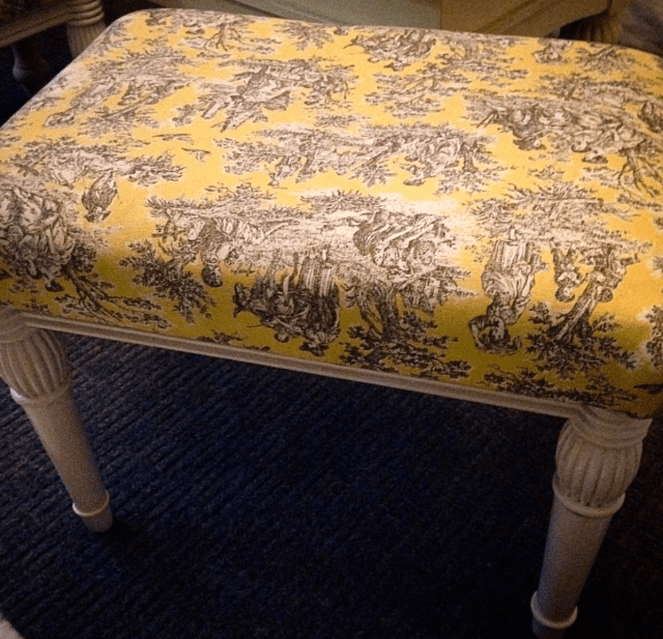 I bought the fabric and had this dressing chair reupholstered.