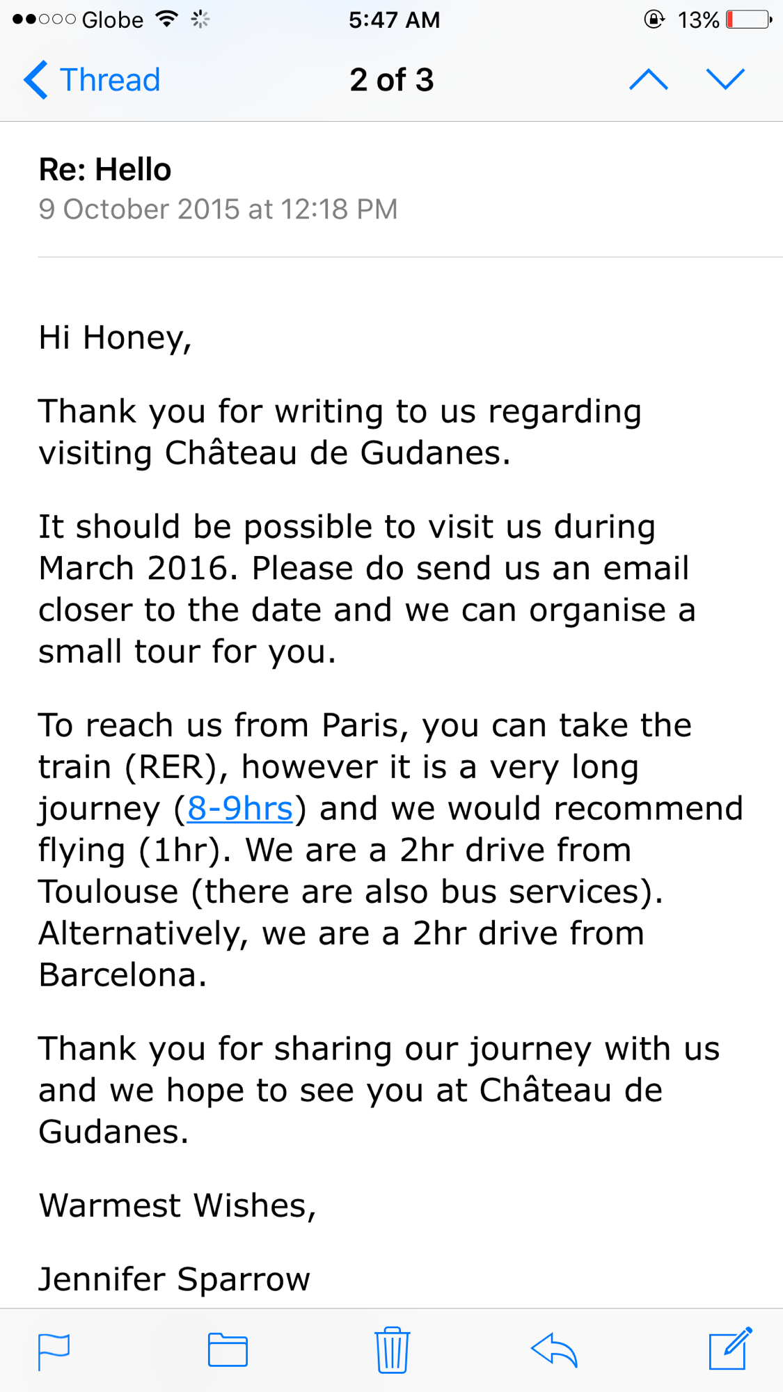 I knew going to Europe was a distant dream because it would cost me a fortune but I also knew in my heart that with God, nothing is impossible. So I wrote them a letter asking if I could visit, if ever I got the chance to go to France. The day after I sent them an email, I got an immediate response from their Social Media Liaison.