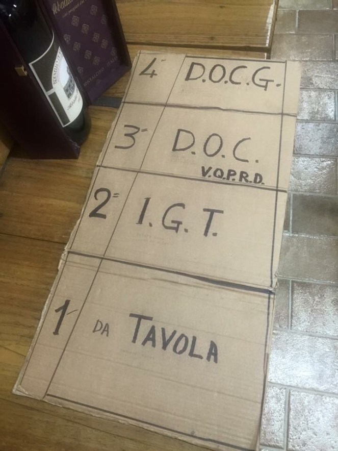 1 Vino da Tavola (VdT) literally means “table wine” and it’s the lowest class of wine, a wine made by the producer as he sees fit to make it and intended for everyday drinking.