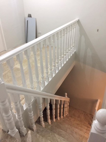 I received so many suggestions on the balcony railings but I just used the same style as what we have on the existing stair railings.