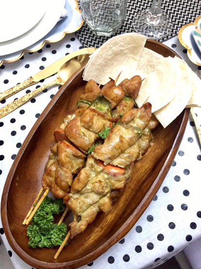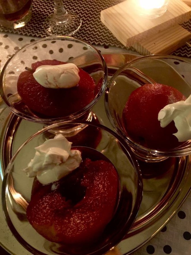 When it came to the food of the party, I never ever really hire a caterer as I enjoy making my own menu and cooking them. I prepared a simple menu that I was sure my friends would love. My birthday party also happened to be Chinese new year so I wanted to make it special. For my appetizer, I served skewered curry chicken and kebabs with hummus and garlic sauce and pita bread. Everyone raved about the hummus and garlic sauce. You can find the recipe here. I also made Pear with Walnut Salad. For the main spread, I served three kilos of shrimps, thinly sliced beef with mushroom sauce, pork barbecue with atchara (pickled papaya), Fish fillet in garlic oyster sauce, lumping shanghai (Filipino spring rolls) and jasmine rice. For the desserts, I made some spiced red wine poached pears topped with mascarpone cheese and chopped walnuts. I also served some fresh pears. For the birthday cake, I ordered this moist custard layered rum cake with whipped cream that was sooo good. This was recommended by someone I follow on instagram, Alicia Sy, author of the popular food guide Eat Out Now and lifestyle editor of Town and Country magazine.