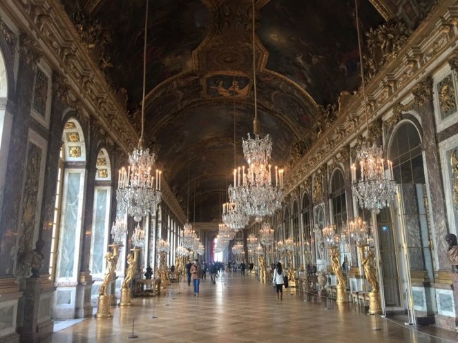 The Hall of Mirrors. My favorite room of all. I stood in awe as soon as I entered this room. It was designed to impress the most respected courtiers and ambassadors from neighboring kingdoms that were received in this hall, where they were also stunned by its grandeur. Mirrors hang on the walls opposite the windows, strategically placed to reflect the natural light.