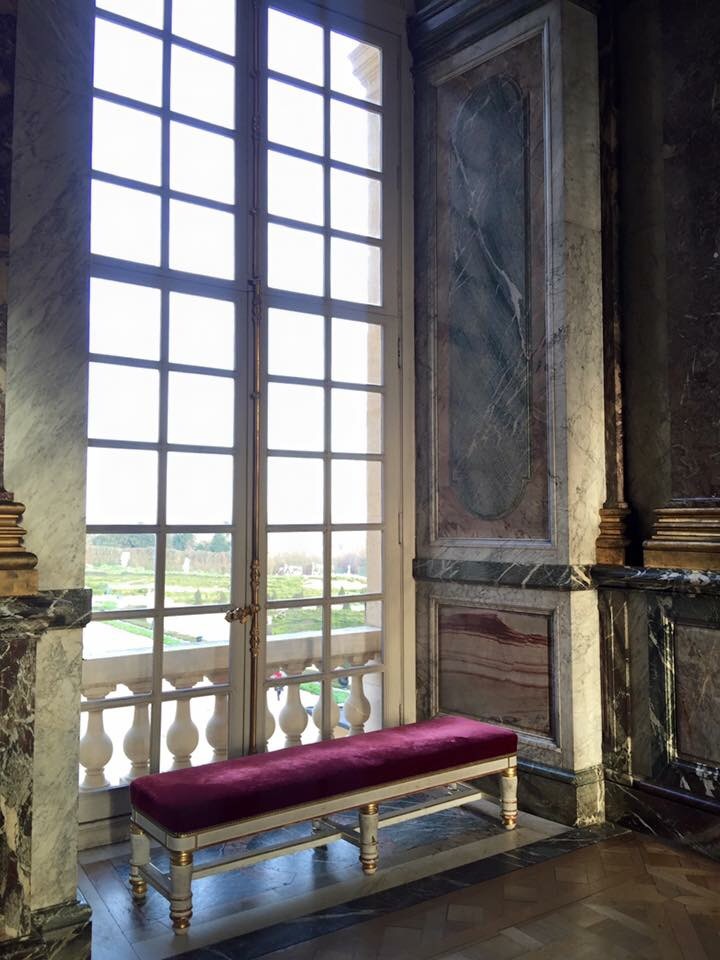 The Hall of Mirrors. My favorite room of all. I stood in awe as soon as I entered this room. It was designed to impress the most respected courtiers and ambassadors from neighboring kingdoms that were received in this hall, where they were also stunned by its grandeur. Mirrors hang on the walls opposite the windows, strategically placed to reflect the natural light.