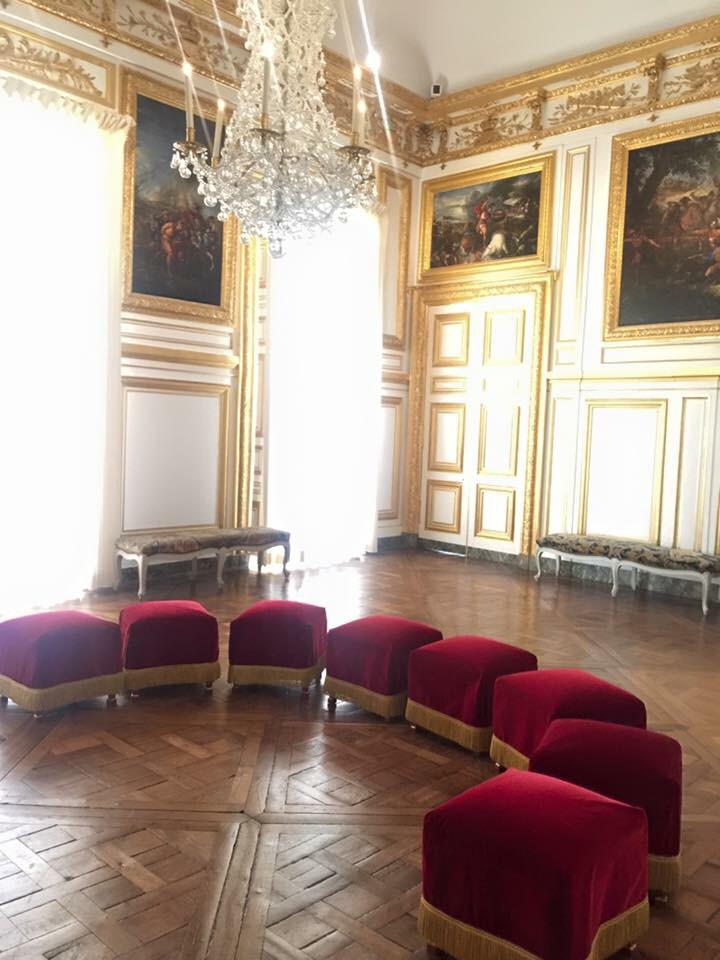 The King’s Bedchamber. It is the most important and symbolic room in the Royal Apartments. It was the location of two important ceremonies where the king would wake up (lever) and go to sleep (coucher) surrounded by his courtiers. The king also had a ceremony for putting on and taking off his hunting boots.