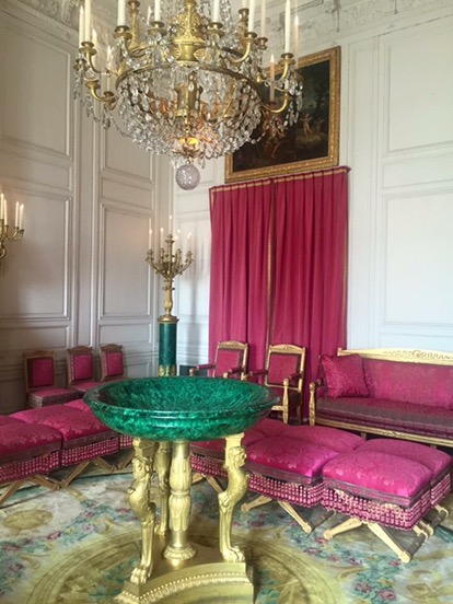 The Malachite Room. Napoleon used this space to house the malachite sculptures presented to him as a gift by Tsar Alexander I, which lent their name to the room.