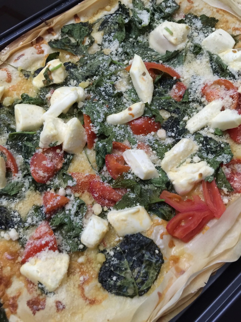 I was craving for pizza and remembered I had fillo dough in the freezer, so I decided to be creative with it. As they say, there’s always a first time for everything, it was fairly easy to make and the pizza turned out surprisingly good.